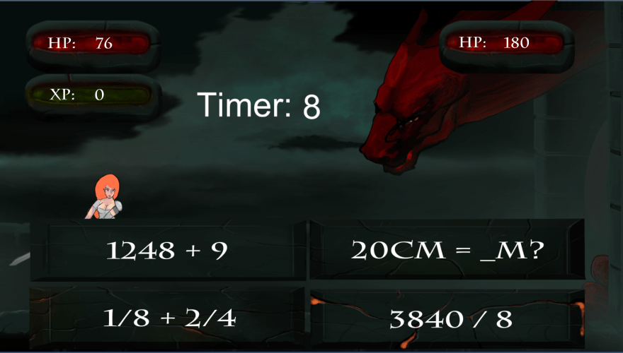 In the game, you must calculate math sums to do damage to the monster but the harder the math the more damage you do to the monster. The game is turned based and I decided how much damage you should give to the enemy and how hard the enemy should hit you.